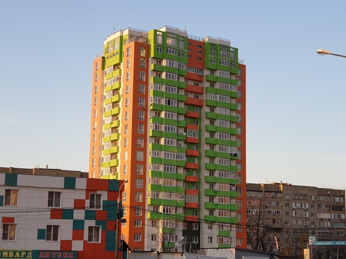 Если сравнивать ЖК «Оранж» с другими новостройками, которые возводятся среди существующей застройки, то данную стройку можно считать одной из лучших, расстояние до ближайшей 9-этажки не менее 50 метров, далеко от проезжей части. Ни шум, ни пыль с дороги не будет проблемой для жильцов данного жилого комплекса.