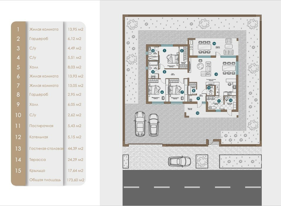 – парковка на 2 машины во дворе и гостевая парковка рядом с домом.