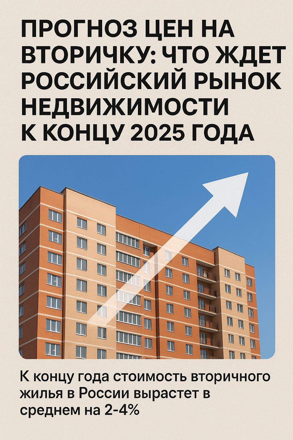 📈 По оценке экспертов, жильё на вторичном рынке вырастет в цене на 2–4%, а в крупных городах — до 6%.