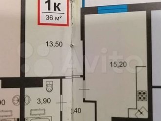 1-к. квартира 38 кв.м, 14/15