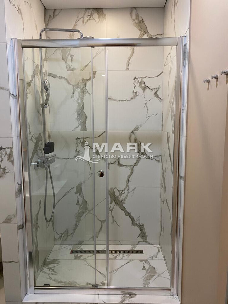 20. В ванной установлена стеклянная выдвижная душевая дверь