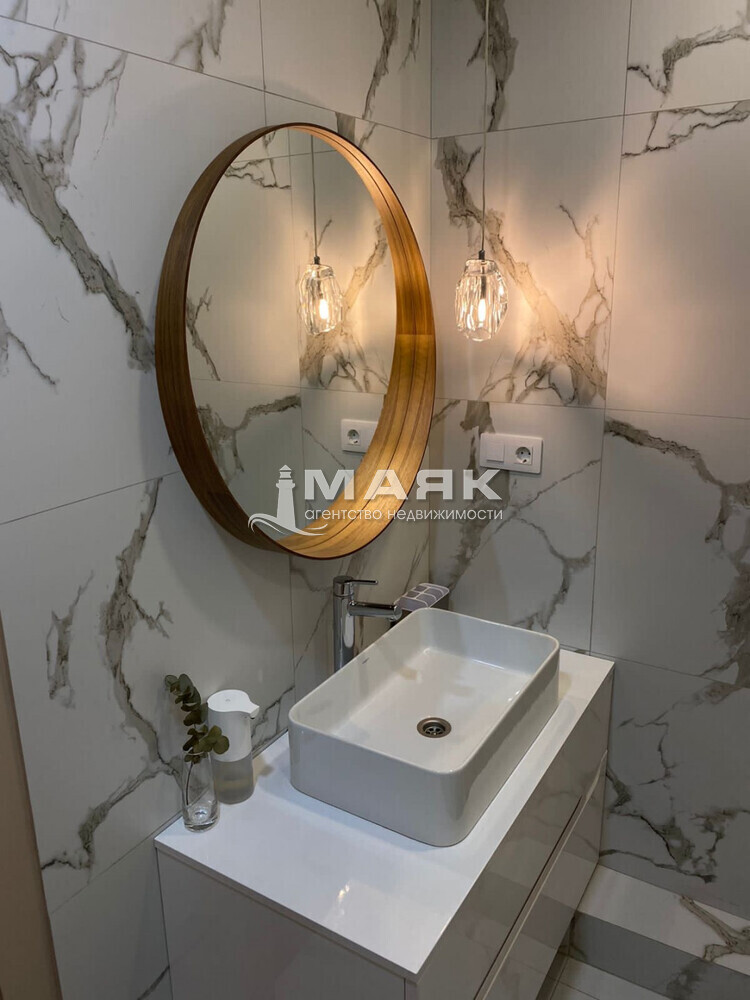 21. В ванной подвешено зеркало фирмы Ikea
