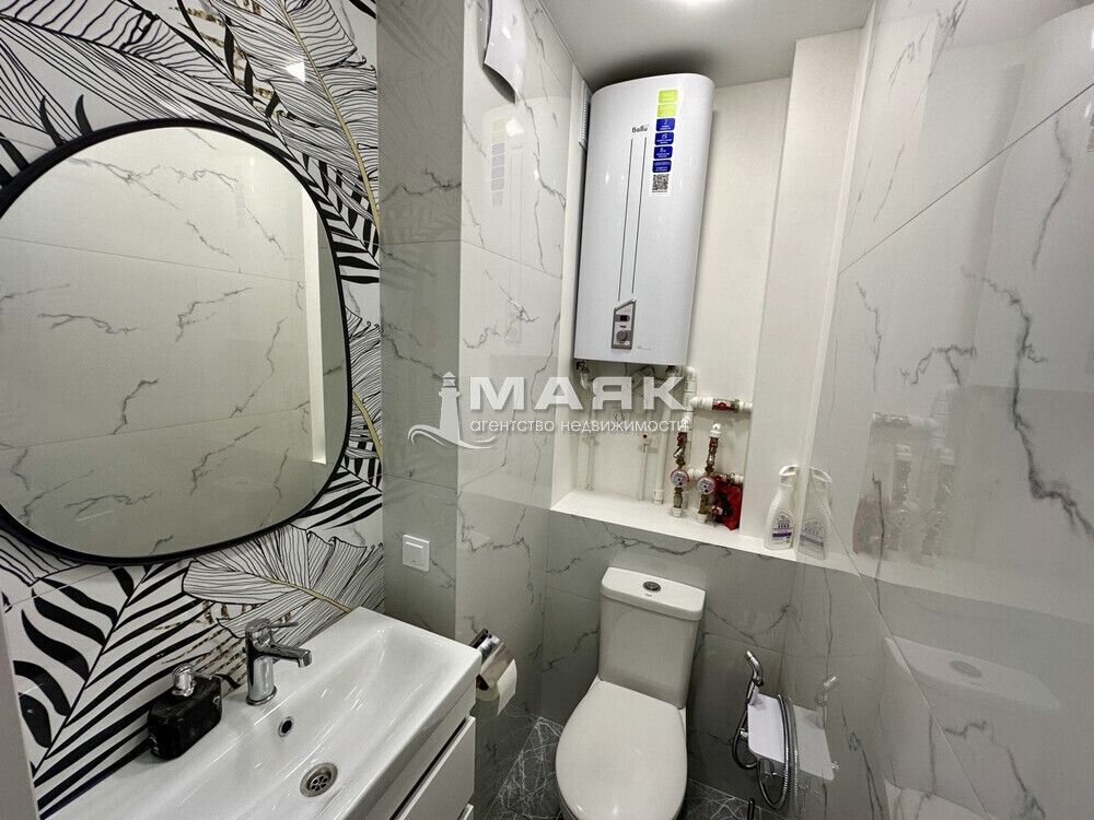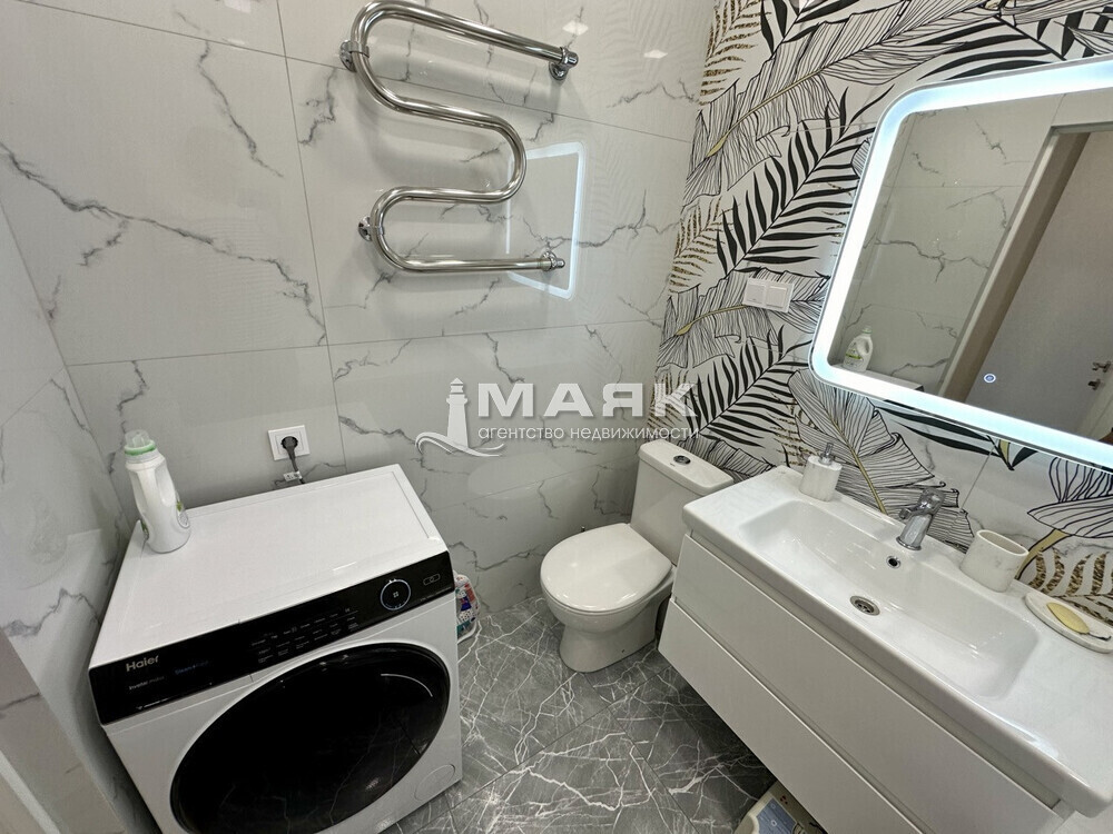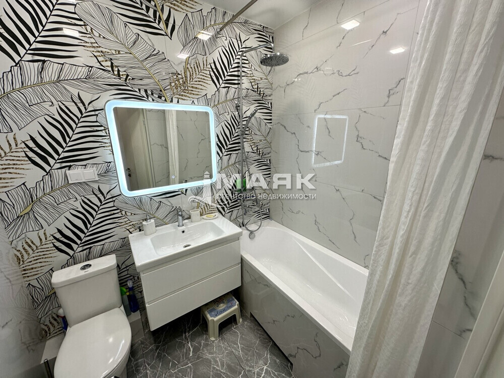 • В ванной комнате — современная сантехника, душевая кабина и качественная плитка.