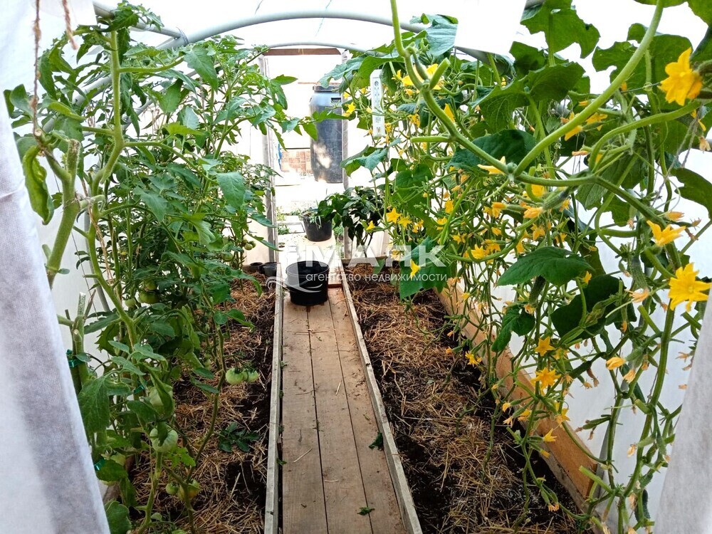 Плодоносящий сад: С взрослыми деревьями и кустарниками (смородина, крыжовник и многое другое), а также декоративными растениями. Участок ухожен и радует глаз в любое время года.
