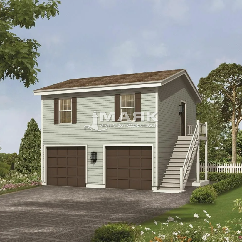 Два спаренных гаража в двух этажах.