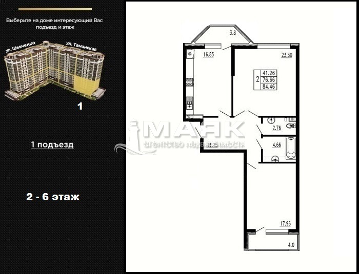 | Площадь (м2) | 84.46 / 41.26 / 16.83 |