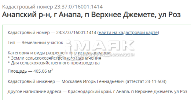 Кадастровый номер — 23:37:0716001:1414