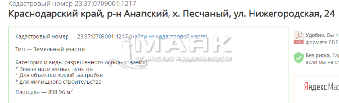 Кадастровый номер: 23:37:0709001:1217