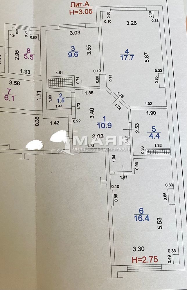Комнаты 17.7кв.м и 16.4 кв.м расположены на две стороны ( окна во двор)