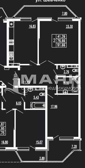 | Площадь (м2) | 91.66 / 41.26 / 17 |