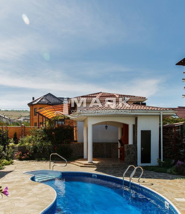 Продается благоустроенная усадьба. Дом 2015 года постройки, с мебелью и бытовой техникой. Общая площадь дома - 371 м2, отапливаемая площадь - 342 м2. Стены - газобетонные блоки 400 мм + пеноплекс 25 мм + облицовочный кирпич (толщина стен 0,55 м). Крыша - металочерепица, цвет терракот. Окна - двухкамерный стеклопакет завода КПИ, энергосберегающая система SOLARIS. Полы - испанская керамическая плитка, в необходимых местах установлены теплые полы и биметаллические батареи. Сплит-системы в каждой комнате. Teлевидение - НТВ+ и Триколор. Интернет (оптоволокно). 5 спальных комнат, кабинет, кухня-столовая, гостиная с действующим камином, огромный спортзал, кладовая, 3 санузла, котельная. На окнах цоколя и 1 этажа художественные кованые решетки, с главного входа и террасы - элитные входные двери. Территория домовладения благоустроена - ландшафтный дизайн, опорные стенки, ступеньки (более 100 роз, более 50 можжевельников, туй и различных экзотических деревьев и кустарников, более 40 плодовых деревьев и кустарников), открытый бассейн 4х8 м с подогревом, глубина 2,1 м (производство США), беседка-альтанка (зона отдыха, барбекю, генераторная и санузел). Все цоколи, дорожки, опорные стенки, парковка и зона отдыха у бассейна выложены натуральным природным камнем. На территории имеется гостевой домик с отдельным выходом на улицу (полностью меблирован и благоустроен) на 2 номера по 2 комнаты в каждом - площадь каждого номера 27 м2. Домик можно использовать для проживания прислуги, либо сдачи в аренду. 4 парковочных места. Центральные водопровод, газоснабжение и электроснабжение 15 кВт, септик на 14 м3, кроме того, имеется колодец на 7 м3 для сбора ливневых вод. Остановка общественного транспорта рядом. Спокойные, состоятельные соседи, чистый горный и морской воздух. Дом строился для себя и под личным контролем. Заинтересованным лицам пришлю фотки внутреннего интерьера дома. Документы готовы к сделке, наличный и безналичный расчет. Небольшой торг при осмотре. Оплата агентам по договоренности.