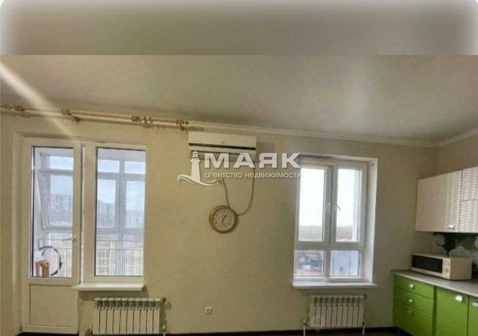Студия 36,6 кв.м. , есть возможность изолировать кухню от комнаты, ремонт. Окна и лоджия выходят на поля и начало кавказских гор. Очень опрятный подъезд, вокруг дома хвойники, розы плодоносящие инжирные деревья. Спортивные и детские площадки.