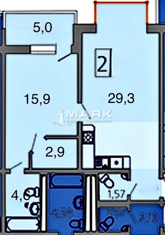 | Площадь (м2) | 58 / 15,9 / 29,3 |