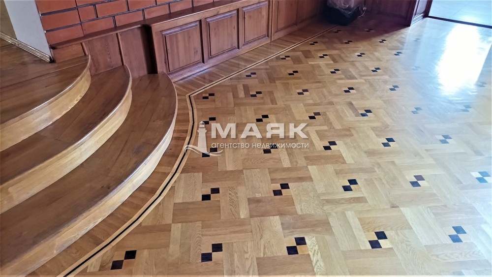 В доме сделан ремонт. Паркет по всему дому, лестница сделана из дерева "Груша" .