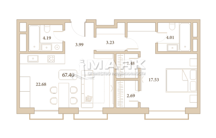 Планировка площадью 67.4 м².