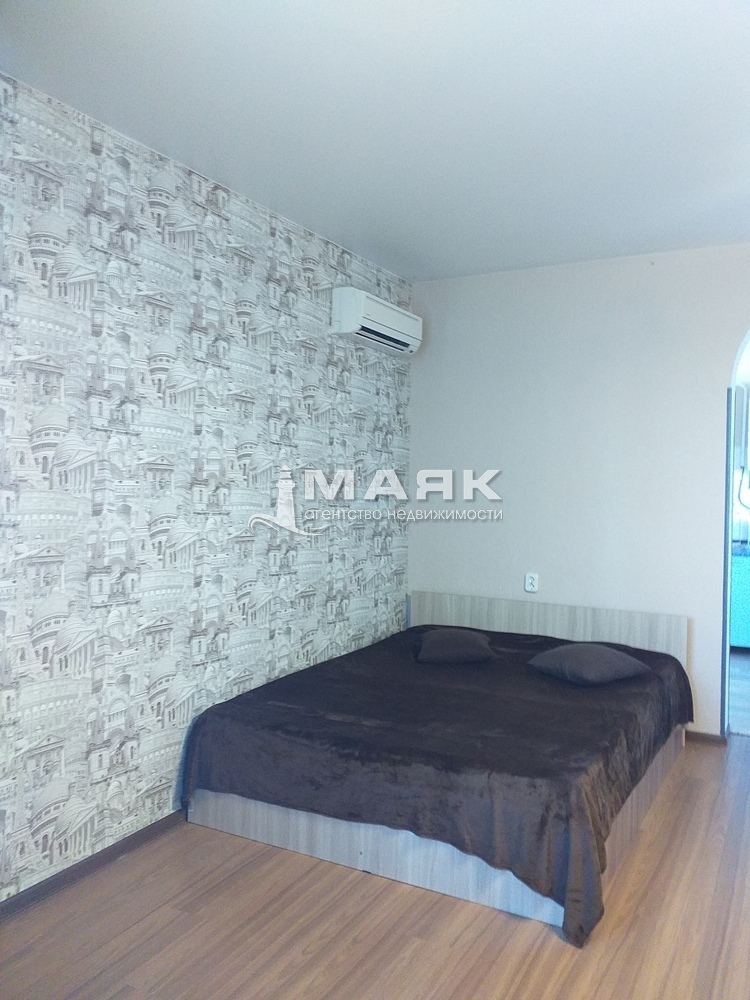 Квартира с мебелью: двуспальная кровать, диван, кресла, шкаф-стенка, кондиционер, выход на лоджию.