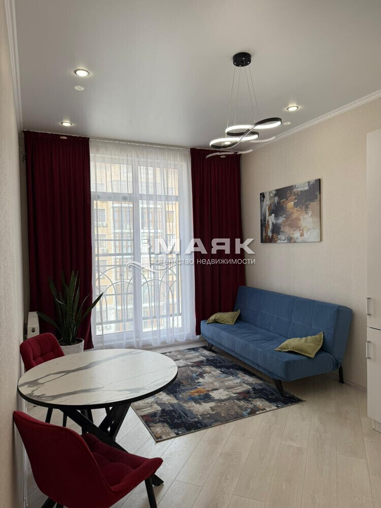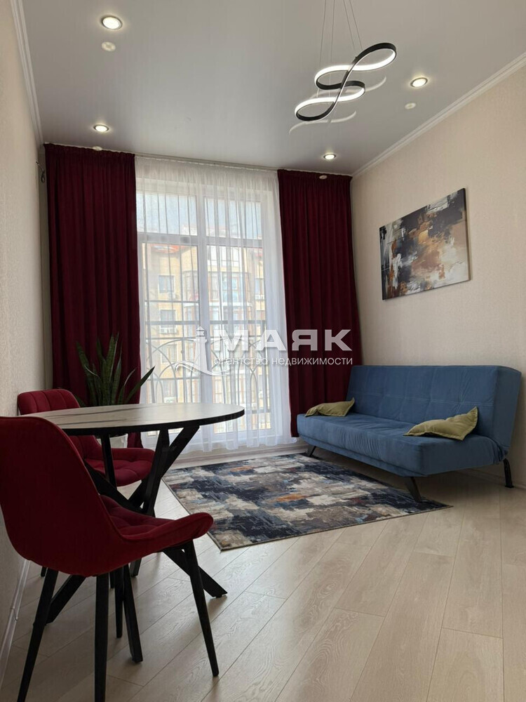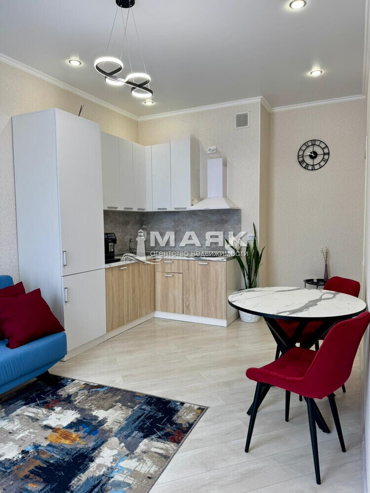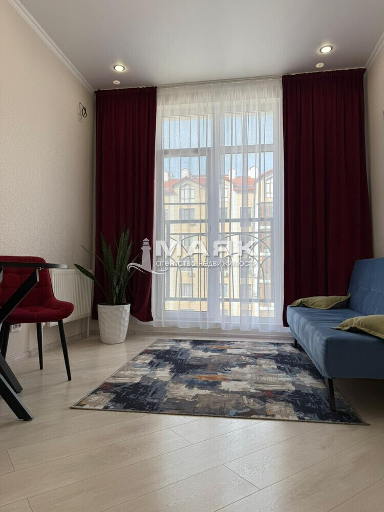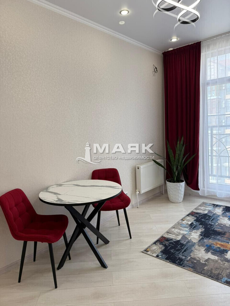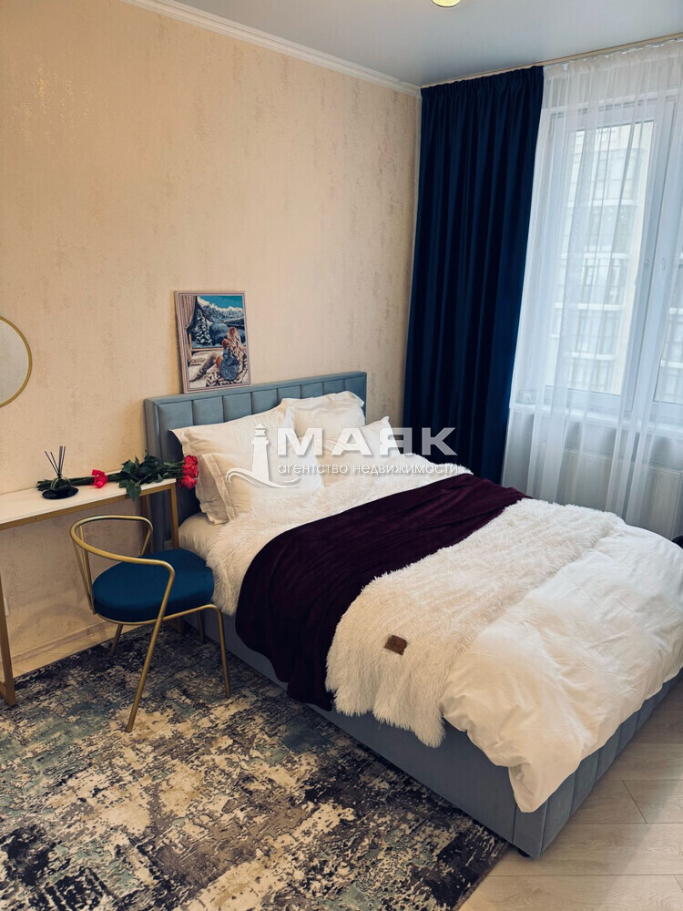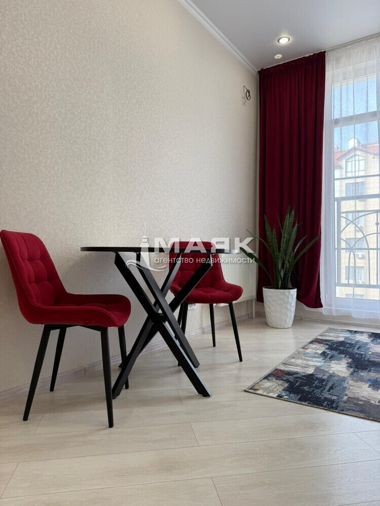 В квартире сделан качественный ремонт, так же укомплектована мебелью и техникой. В ванной комнате проложен теплый пол. Большие окна в комнате и на кухне дополняет свет и это стало визитной карточкой комплекса.