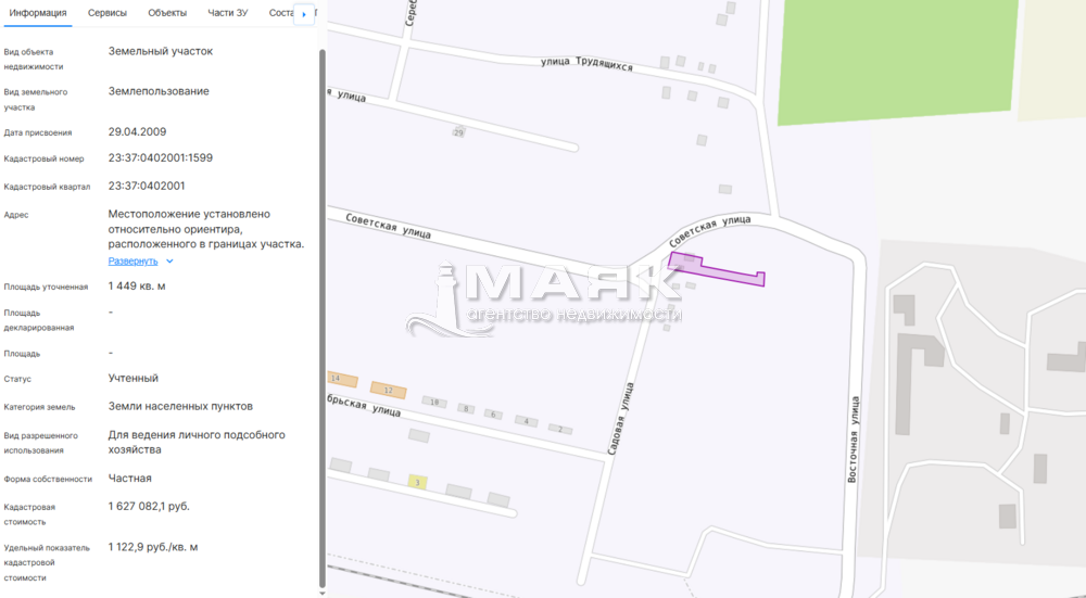 Площадь участка: 1449 м²