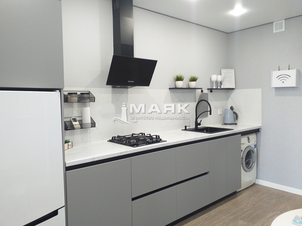 Квартира расположена на 6 этаже 9-этажного дома, в шаговой доступности море, парки, аллеи, ярмарка.