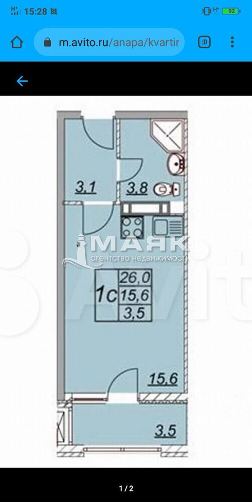 Общая площадь 26 кв.м