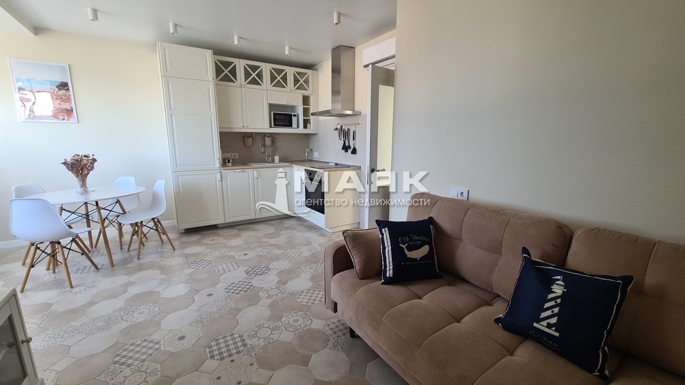 Квартира с дизайнерским ремонтом, ПАНОРАМНЫЙ ВИД НА МОРЕ, очень качественная мебель и техника. Удобная планировка квартиры, кухня-гостинная 20 м, в квартире все продуманно до мелочей для вашего удобства от ремонта до встроенной мебели и техники. Малоэтажный жилой комплекс с отличным благоустройством, видеонаблюдение, автополив, детские, спортивные площадки, большое количество парковочные мест, магазин перекресток, два парка, спуск к морю. Звоните!