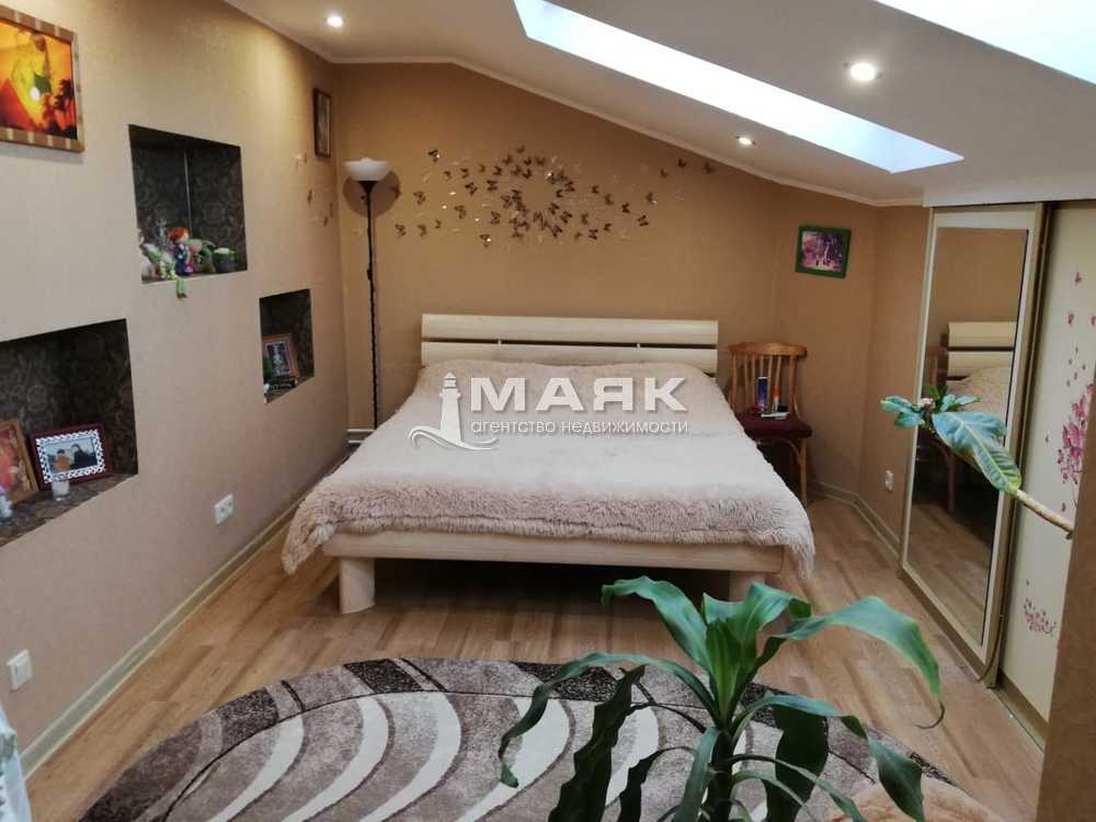 Продается 4-х комнатная квартира (двухуровневая) общей площадью 104м2 в кирпичном доме новой постройки. 1 уровень: коридор 7,7 кв.м, санузел 5,9 кв.м, кухня - гостиная 9,8 и 15,2 кв.м, жилая комната и гардероб 32,1 кв.м, лестница. 2 уровень: холл 12,6 кв.м, спальня 15,2 кв.м, санузел 1,4 кв.м., отопление центральное. Второй уровень мансардный со скошенными потолками (все узаконено). В спальне на втором уровне в потолке установлены два мансардных окна. Дом очень тёплый. Квартира расположена в зеленом спокойном районе. Большой двор, детская площадка, парковка для авто. Рядом школа №4, остановка, рынок, магазины...
