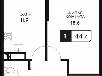 1-к. квартира 44.7 кв.м, 6/15