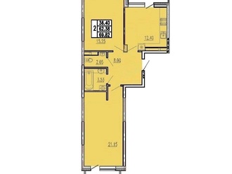2-к. квартира 69.82 кв.м, 3/8