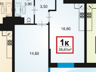 1-к. квартира 38.6 кв.м, 8/9