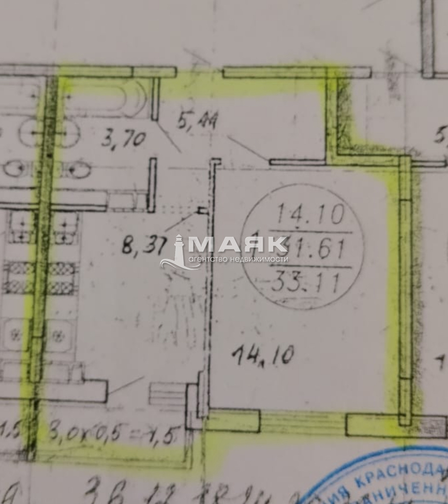 | Площадь (м2) | 34 / 14,10 / 8,37 |
