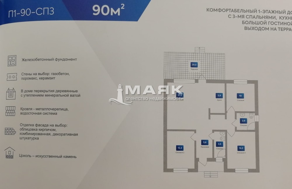 | Площадь (м2) | 90 / 63 / 5,9 |