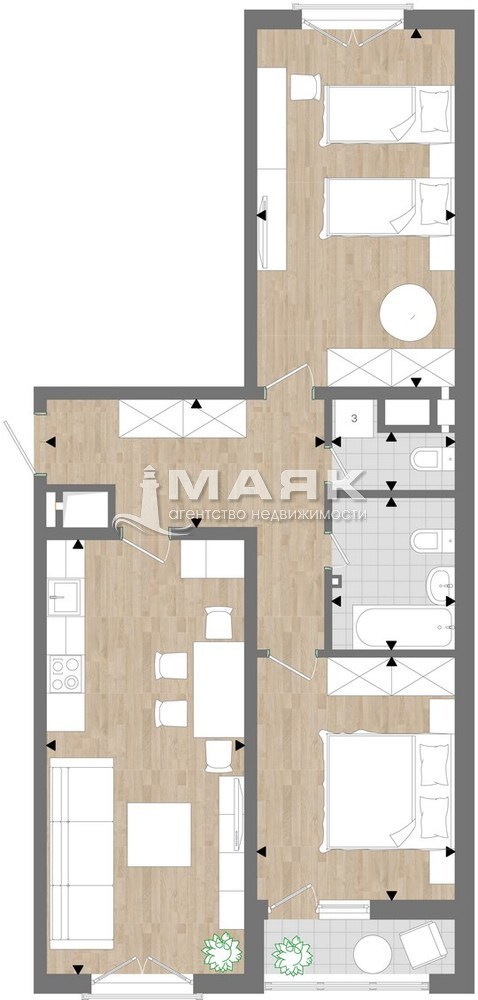 Продается Евро-3 комнатная квартира, 70 кв.м, кухня гостинная 20квм с французским балконом НА 16/18 эт. дома в ЖК Южный квартал Анапа, Супсехское шоссе 39 к 13.