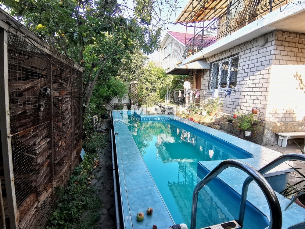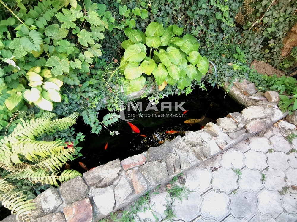 Так же на территории участка имеется бассейн на 25 кубов воды, сад и пруд с рыбками.
