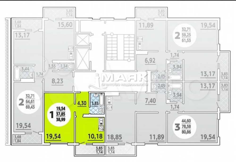 Площадь (м2) 39 / 19,54 / 10,2