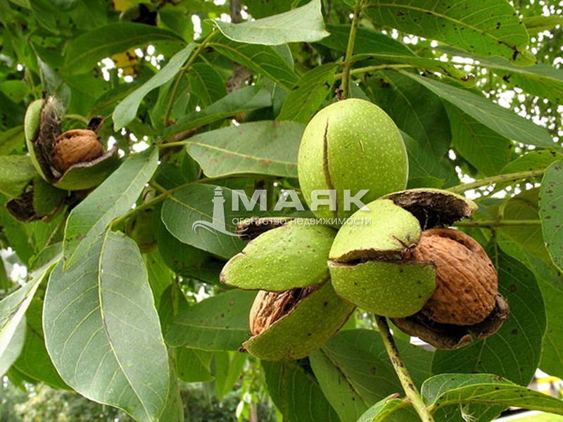 На участке много плодовых деревьев.