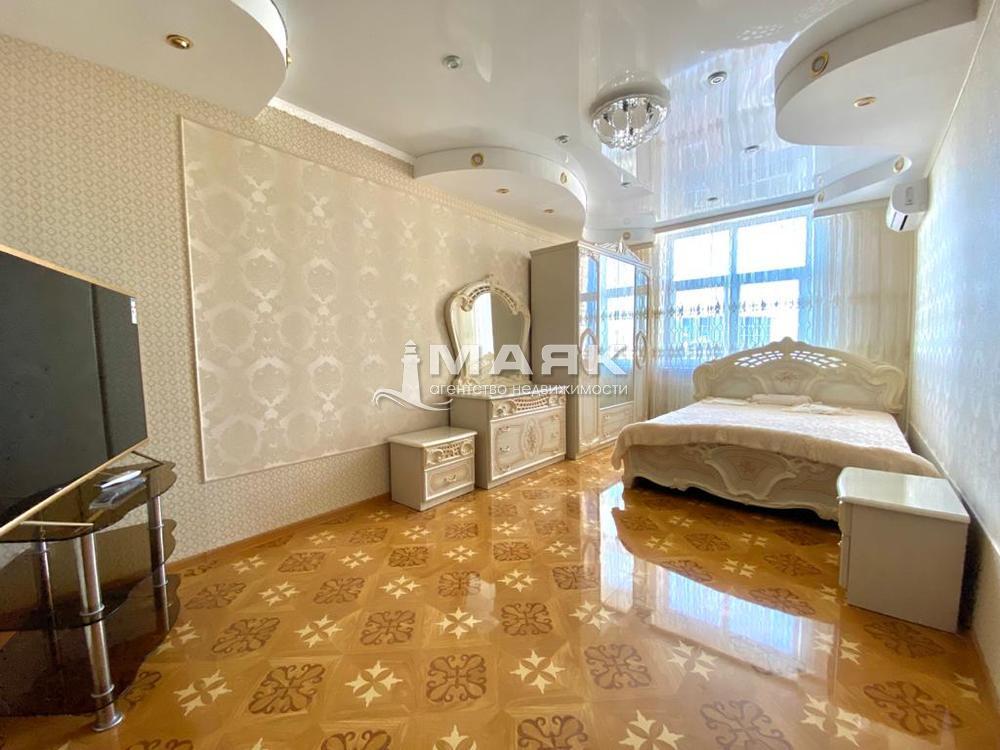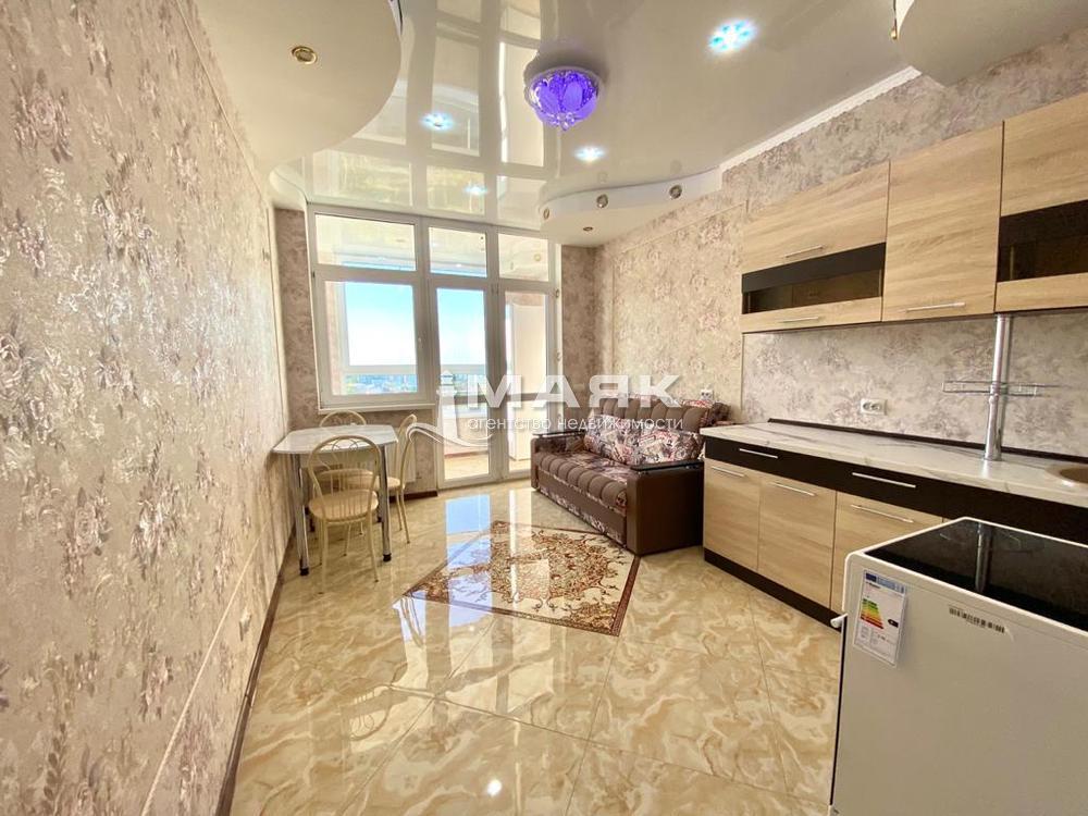 Продается 1-комнатная квартира в центре г. Анапы (ЖК Привилегия", Парковая, 61, корп. 3; элитный комплекс комфорт-класса). 11/14-этажного монолитно-кирпичного дома. Дом сдан (весна 2020 г). Парковка. Закрытая территория. Видеонаблюдение (у дома, в подъезде, в лифтах). Пихты во дворе. Розы. Декоративный водопад. Зона барбекю. Тренажеры. Две площадки (детская и волейбольная). Квартира - "видовая" (на горы, море; видимость - до 17 км. побережья). Площадь: 47,6/18/15,7. В квартире - новый авторский ремонт (август 2021 г.; еще никто не жил). Материалы достойного европейского качества. Евродизайн. Пластиковые окна (двойной стеклопакет; застекленная лоджия - 3,7 кв.м). Импортный, глянцевый ламинат в комнате (художественный, фигурный, 33 класс; толщина -14 мм, восковой влагостойкий шов). Бельгийские натяжные потолки. Эффект театральных подсветок. Коллекционный тюль (сборка 1 к 3,5). Глянцевый гарнитур "Роза" (Калининград; бренд "Диа мебель"; дворцовый стиль "барокко", цвет - слоновая кость, элементы ППУ, итальянская технология производства); Импортный TV ("Nesons"; Япония, плазма; диагональ - 55 дюймов, или 142 см). Smart (подключение TV к интернет через Wi-Fi). Светодиодные лампы (итальянские; GU 5,3). "Эффект зеркала (высоты)": отражение (блики) в плитке пола, глянцевых потолках, в ламинате комнаты. В квартире - 9 цветных дуговых арок (3 - в комнате; 3 - в кухне; 2 - в коридоре; 1 - на лоджии). Самостоятельное подключение каждой (в 5 цветах). Пультовые люстры (в комнате; в кухне; в 3 цветах). 68 (!) точечных светильников по квартире (47 цветных; с голубыми кольцевыми светодиодами, горящими отдельно). Коллекционное плиточное панно "Эрмитаж" (120х120; специальный заказ из Петербурга; искусственный камень, коллекция дизайнерского керамогранита). Покрытие пола (в кухне, в коридоре, на лоджии) - ректифицированный (бесшовный) керамогранит "Elegant Armani Crema" (поверхность - глянец; цвет - глазурованный желтый мрамор; технология - ректификация, с использованием кварцевого песка; III класс износостойкости - PEI III). Размер плит - 600х600 мм; идеальная геометрия плит (со швами - "вплотную" (не более-1 мм); эффект сплошного монолитного покрытия). Импортная плитка в санузле (4 вида; бордюры, фриз, зеркальное напыление (!). Акриловая ванна (импортная; глубина 41 см - maх). Акриловый экран (к ней). Ширина умывальника (и зеркала) в ванной - 104 см (!). Немецкие виниловые обои-компаньоны ("Erisman"; с вспененным и горячим теснением; плотность - 400 г/кв. метр - maх; 3 цвета в одном дизайне; бесшовная подгонка). Молдинги (три - в комнате; два - в кухне). Обеденная зона (столик "Elegant"; раздвижной; с 4 стульями). Кухонная стенка (с фруктовницей; тонированными стеклами). Столешница - 38 мм (цвет -"итальянский мрамор"). Диван "Elegant" в кухне (2-х местный, новый, раздвижной; 190х160). Кондиционер (японский "Nesons"; "девятка", класс энергопотребления А+). Холодильник (японский "Nesons"; высота - 206 см; max, класс А+). Стиральная машинка ("Indezit"; загрузка 5 кг, класс А+). Немецкая электроплита ("Hansa"; класс А+; стеклокерамика; 4 конфорки, 3 режима духовки).