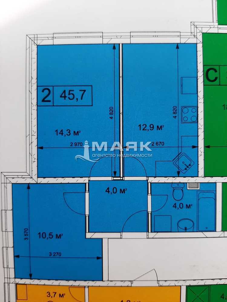 Продаю полноценную 2-х квартиру 43,6 м2 в новом доме, ЖК "Раз, два, три", на 19 этаже 20 этажного жилого дома.