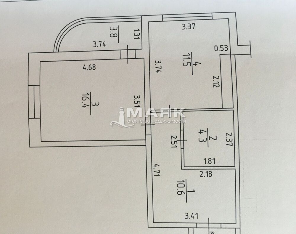 Отличная планировка: комната 16,4 м2, кухня 11,5м2, прихожая 10,6 м2.