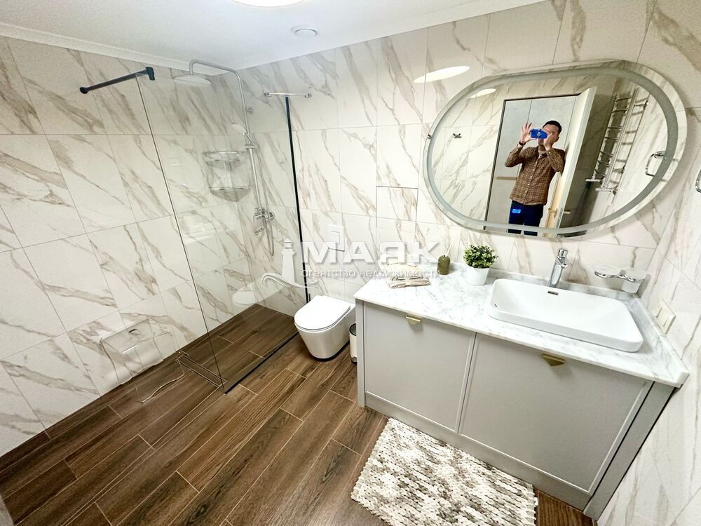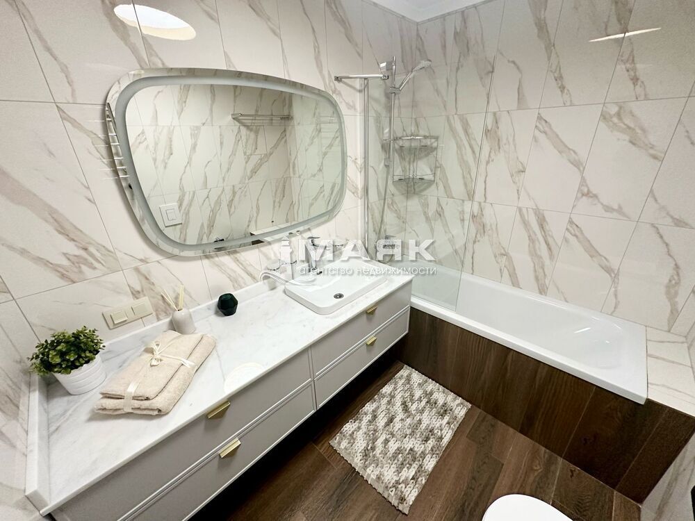 В сан.узлах установлена сантехника. Столешница из искусственного камня, накладная раковина и итальянские смесители. Смонтированы душевые и ванные.
