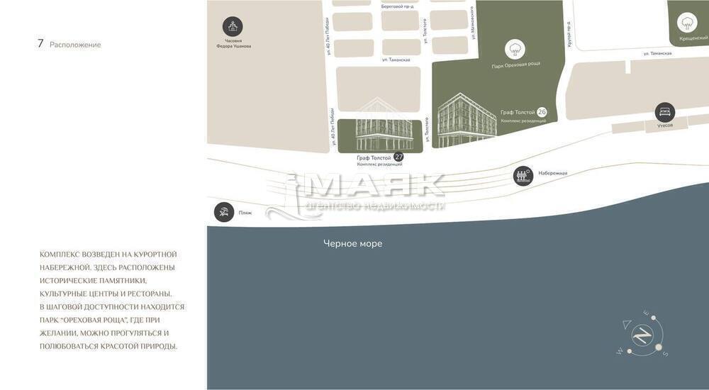 ✅«Граф Толстой» — это комплекс резиденций с благородным обаянием в каждой детали. Локация в одном из самых престижных районов города, на первой береговой линии Чёрного моря. Расположение совмещает в себе первозданный природный ландшафт и современную инфраструктуру. Здесь в гармонии с горными пейзажами, чистым небом и морским ветром, вы можете отдохнуть от городской суеты и набраться вдохновения для новых свершений. С резиденций открывается потрясающий прямой вид на море.