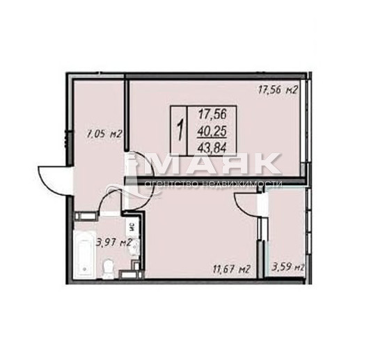 | Площадь (м2) | 43.84 / 17.56 / 11.67 |