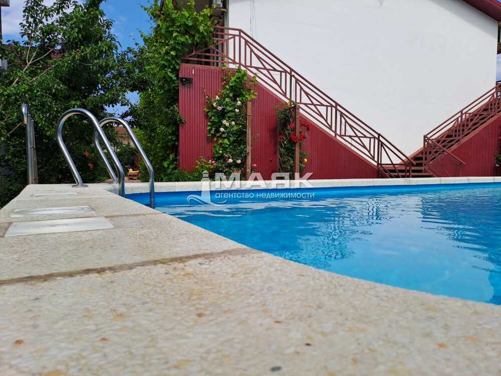 Капитальный бассейн 3,5 х8 м, глубиной от 1,2 м. до 1,6 м. имеет высокий борт, исключающий случайное падение в воду, автоматические станции апробации воды и дозирование химических реактивов, песочный фильтр, систему подогрева. Банька на дровах с комнатами отдыха, туалетом, моечной использовалась исключительно для собственного удовольствия без коммерческого использования.
