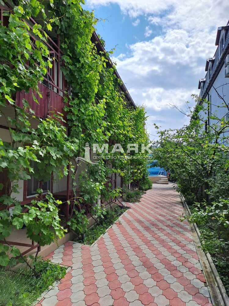 Первое 2-х этажное здание построено в 2016 году, площадью 430 кв.м. (кадастровый номер 23:30:0402010:865). Второе 3-х этажное здание введено в эксплуатацию в 2022 году, площадью 415,2 (кадастровый номер 23:30:0402010:1256). Фундамент - ленточный, материал стен - газобетон, перекрытия - плиты и монолит. Центральное водоснабжение, электричество 3-х фазное, газовое отопление и плиты, канализация - герметичные септики, объемом 10 м3. и 12 м3. с выводом за территорию, что минимизирует неприятные запахи при работе ассенизаторской машины. Обустроены апартаменты для круглогодичного проживания хозяев. Общее количество функционирующих помещений под сдачу - двадцать восемь (семь семейных 2-х комнатных, 4-х местных кондо с персональной кухней и отдельной террасой на первом этаже, девять семейных 2-х комнатных, 4-х местных кондо, восемь однокомнатных 2-х местных, три однокомнатных 3-х местных и одно однокомнатное одноместное кондо). Дополнительно подготовлены помещения для трех однокомнатных 3-х местных кондо на третьем этаже с небольшой личной кухней. Все, предназначенные для сдачи помещения, имеют совмещенный санузел с душевой кабиной и раковиной для умывания, телевизор, сплит-систему, полноценный холодильник и всю необходимую для комфортного проживания мебель.