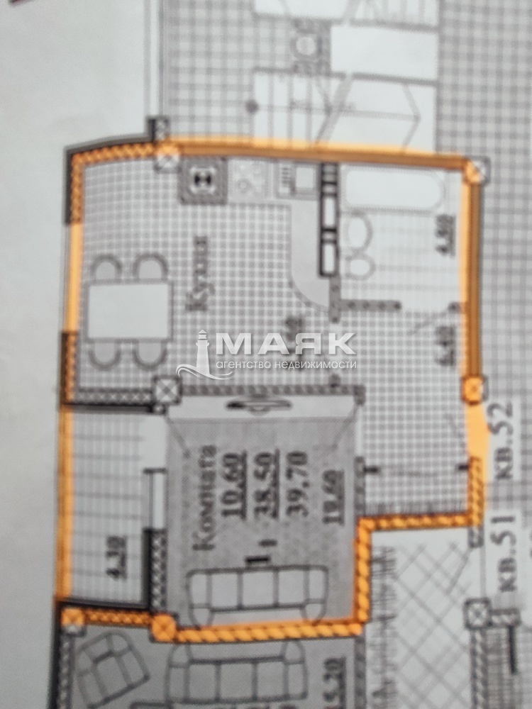1-к. квартира 51 кв.м, 2/5