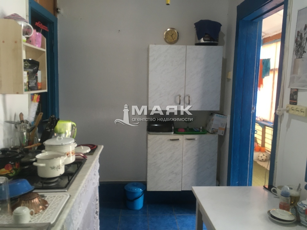Веранда (не отапливаемая), кухня, совмещенный санузел, две изолированные жилые комнаты. Плюс одна жилая комната с отдельным входом со двора. Высота потолка 2.50 м.