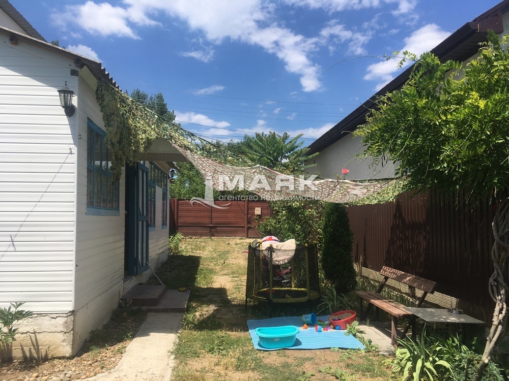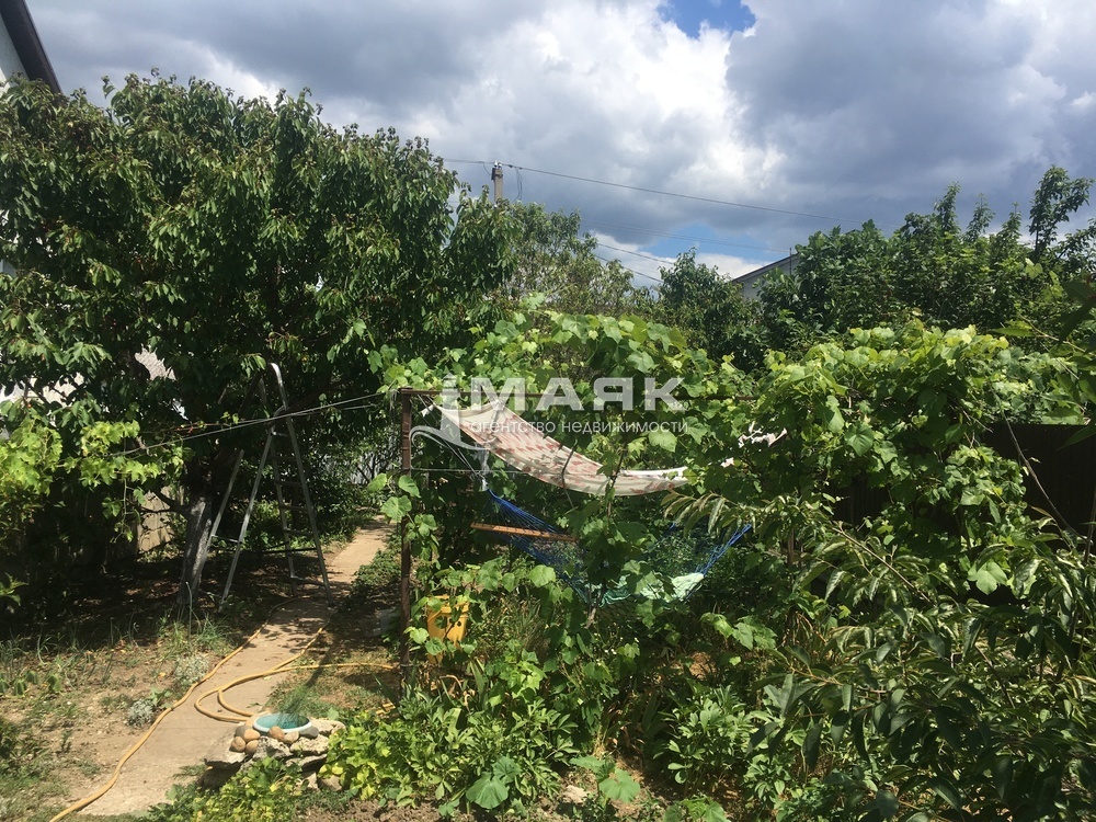 Фруктовый сад (вишня, черешня, персик, инжир, фундук, крыжовник, виноград и т.д.), огород. Тихое место. Огорожен забором, калитка, ворота для въезда авто. Рядом расположено озеро. В поселке расположена кадетская школа, дом культуры, различные магазины, хорошее транспортное сообщение с городам. До моря 3 км. (песчаный пляж). Пешком примерно 40 минут.