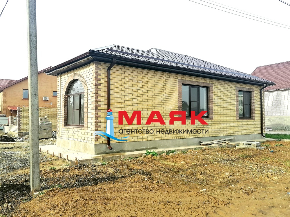 Дом в курортном поселке Витязево. Новый, компактный и очень уютный дом с большой нарядной прихожей с большим окном. В доме эргономичная планировка: 3 спальни, санузел, кухня-гостиная, прихожая.