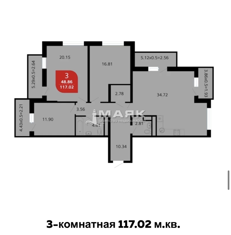Площадь (м2) 117.2 / 49 / 35