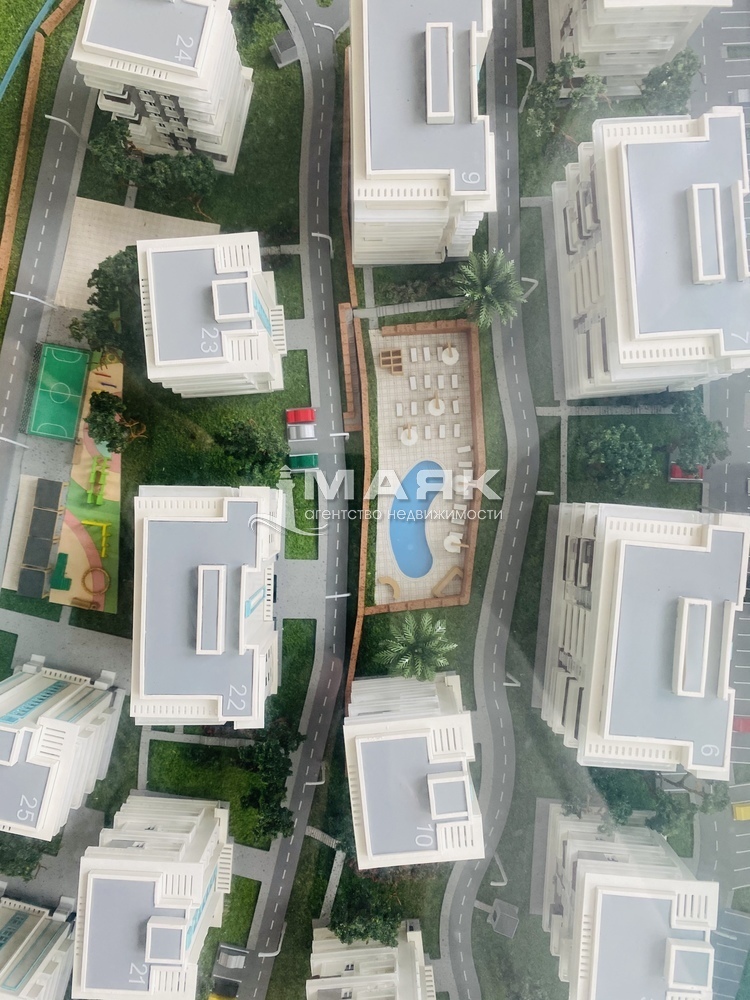 Расположена на первой береговой линии в новом жилом комплексе "Анаполис". Закрытвая охраняемая территория, автономные комуникации, 2 бассейна на территории, детские и спортивные площадки, собсвенный выход к морю.